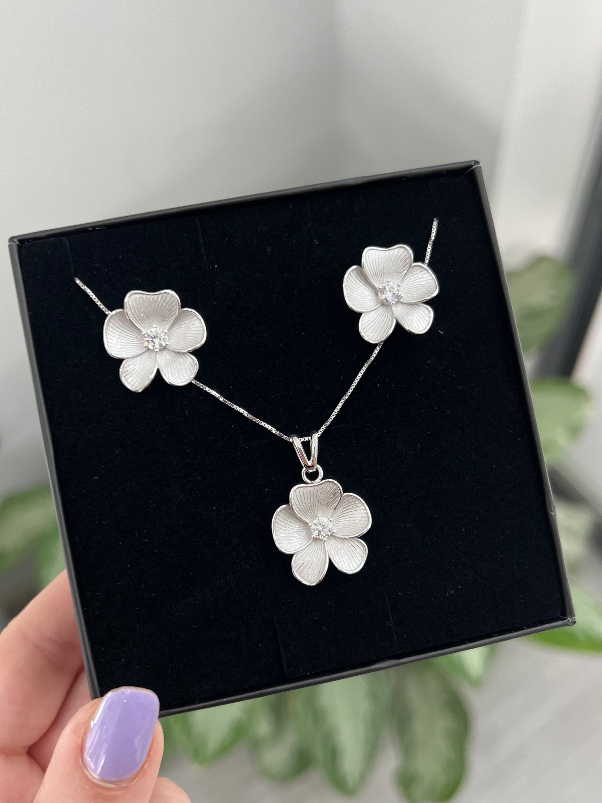 Ispirato alla grazia del fiore di ciliegio, gli orecchini Sakura uniscono eleganza e delicatezza in ogni dettaglio. Realizzati in argento 925 e impreziositi da un punto luce centrale, dona luce e armonia a ogni tuo look.
